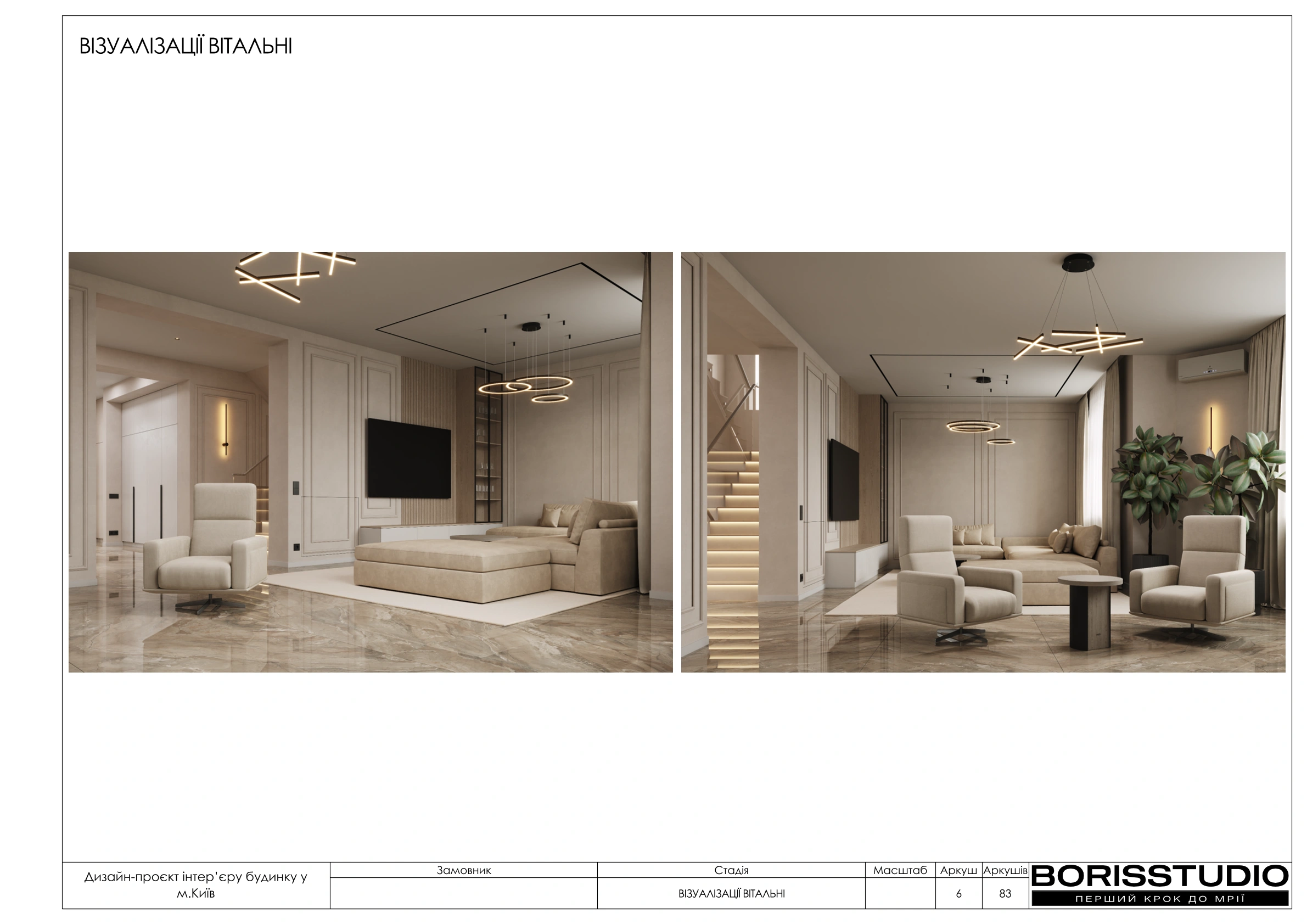 Велике дякую BORISSTUDIO за розроблений дизайн-проект мого таунхауса в Києві площею 78,3 м2. Робота виконана на найвищому рівні – дуже професійно, з увагою до всіх деталей та моїх побажань.