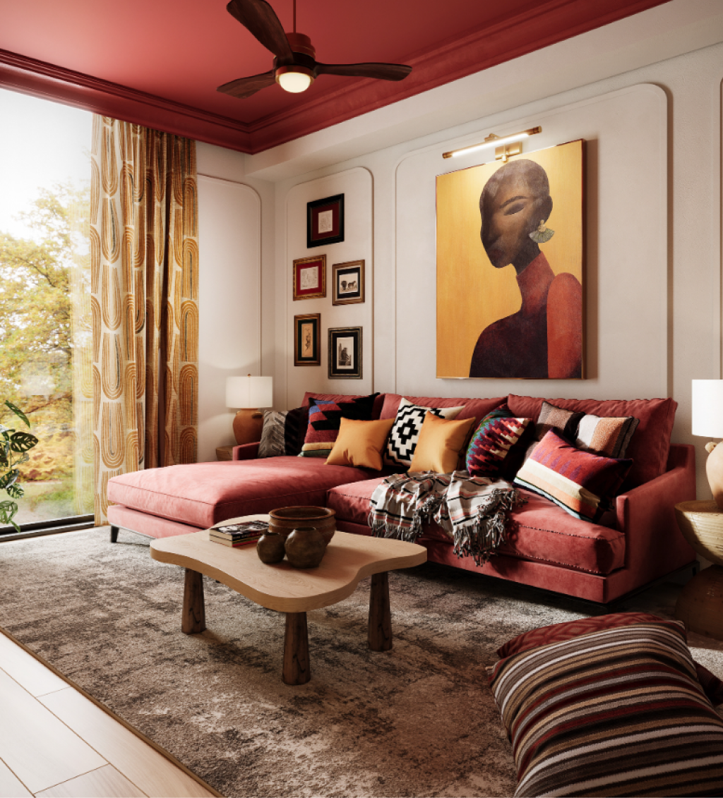 Додати інтер’єру фарб можна за допомогою більш насичених кольорів: фіолетового, жовтого, індиго, рожевого, помаранчевого або зеленого, червоного.