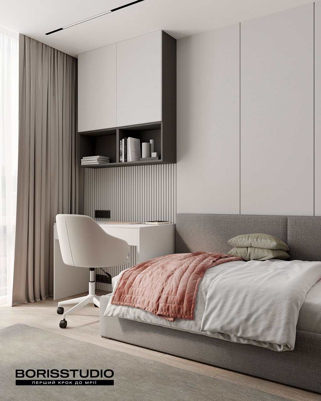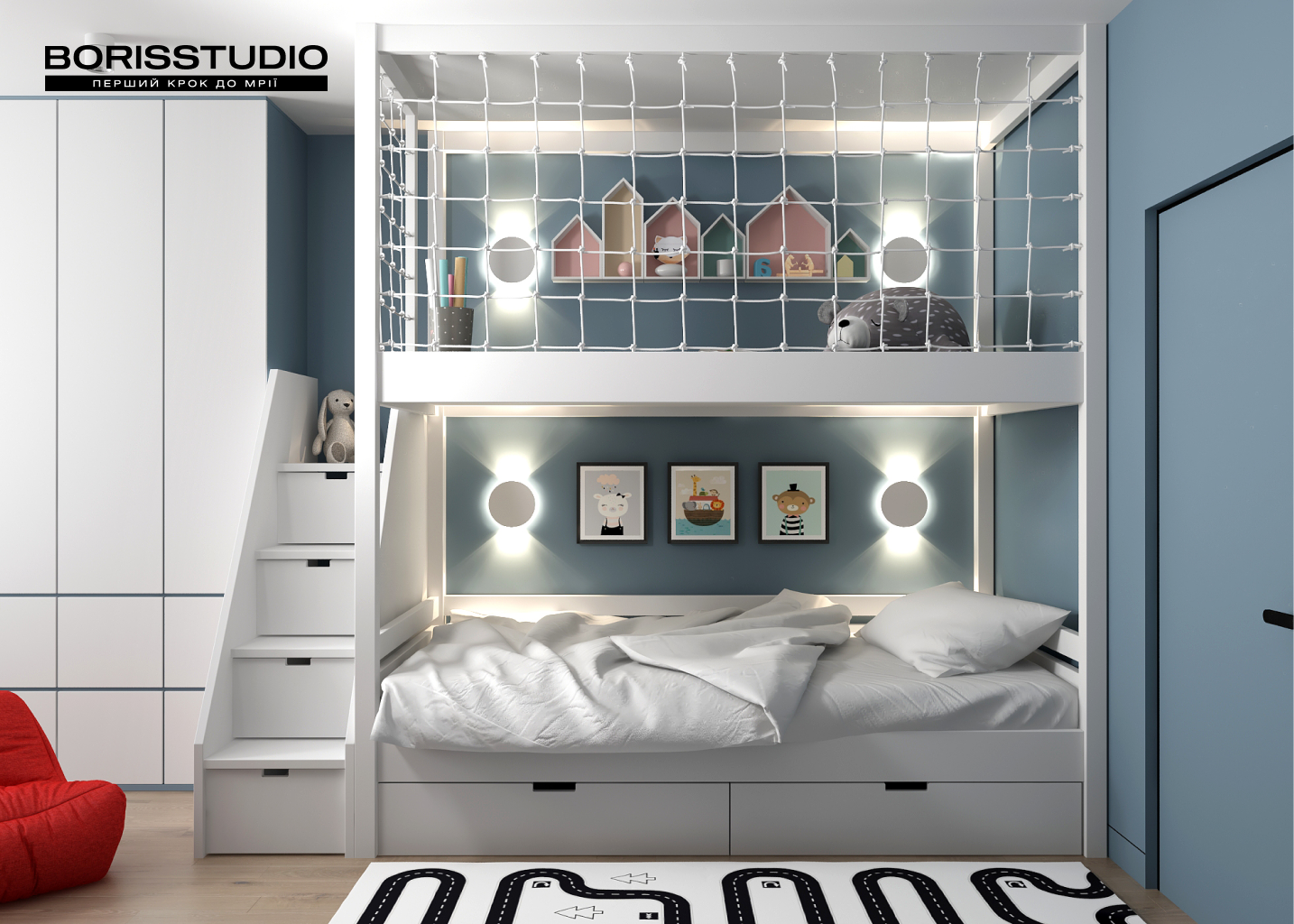 З BORISSTUDIO Вам не потрібно витрачати величезну кількість сил та часу на пошук відповідних предметів меблювання для кімнати своєї дитини. Достатньо лише озвучити бюджет та побажання щодо оформлення, рештою – від замірів та розробки дизайну до виготовлення та збірки займатимуться наші перевірені штатні фахівці.