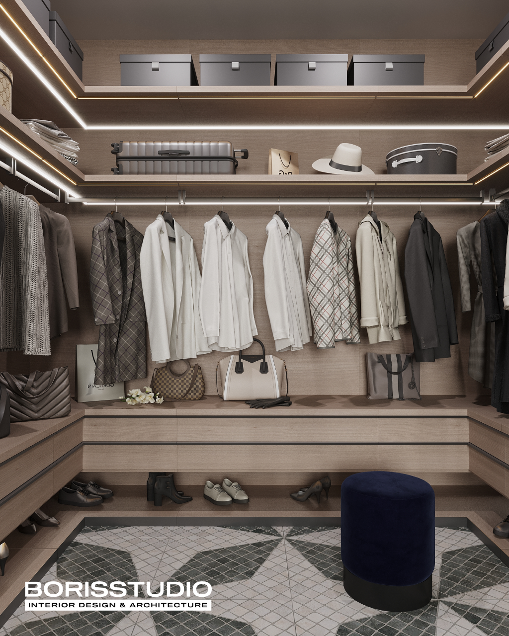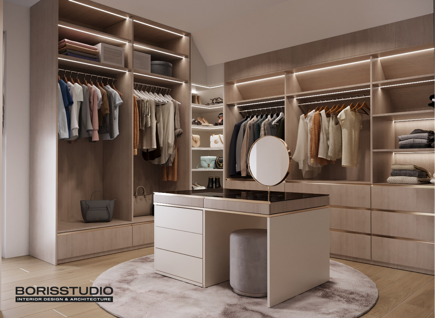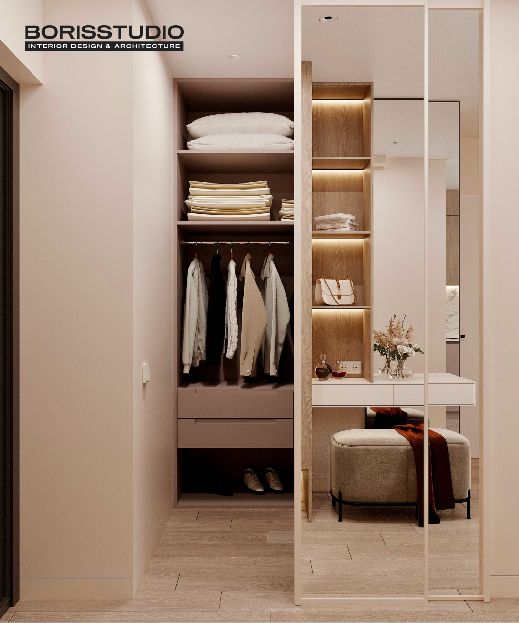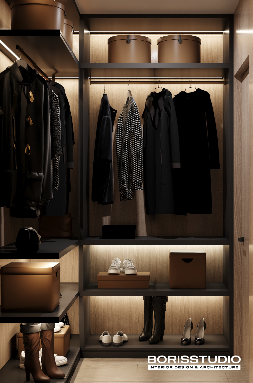 Гардеробна на замовлення – оптимальне рішення як для квартир, так і для приватних будинків. Це можливість організувати практичне та зручне зберігання речей, не перевантажуючи інтер’єр масивними шафами, комодами та тумбами. Все необхідне завжди буде під рукою і не доведеться гаяти час на пошук потрібного.
