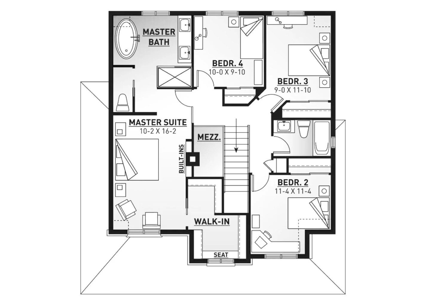 Планування будинку з мансардою базується на тих же принципах, що і для двоповерхової будівлі. Необхідно забезпечити якісну інсоляцію кімнат, для чого чудово підійдуть мансардні вікна. Другий поверх можна використовувати для розміщення кімнат особистого користування – спалень. Для молодої пари без дітей на мансардному поверсі допустимо застосувати відкритий тип планування, відокремивши лише санвузол, а решту простору залишивши без перегородок.
